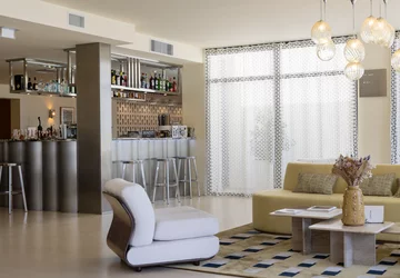 Le salon et le bar s'accordent jusque sur la terrasse extérieur, pour vos moments détente au Loria Bar.